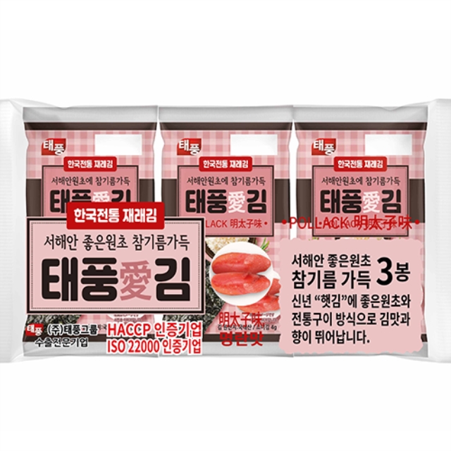 명란맛 도시락 김 9절 4g (72개),까다로운 일본에 1000만불 수출한 태풍김
