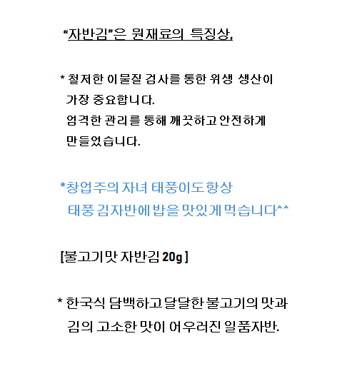 한국 불고기맛 자반김 20g (30봉), 1000만불 일본 수출 태풍 김