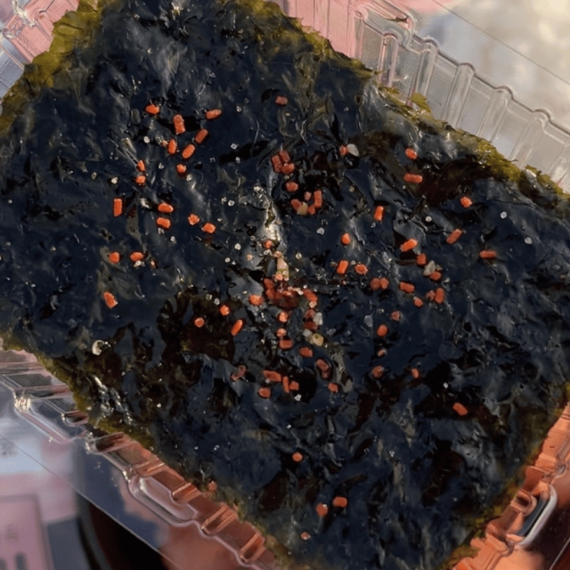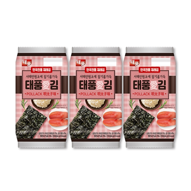 | 1-4. 원재료명 (「농수산물의 원산지 표시 등에 관한 법률」에 따른 원산지 표시 포함) | 재래김(국산)51%, 옥배유(외국산: 미국, 러시아, 브라질 등), 참기름(외국산: 인도, 나이지리아, 이탈리아, 피아 등), 명란시즈닝(국산), 가공소금(국산), 허브추출물(조미김용 혼합추출물, 미국산) |