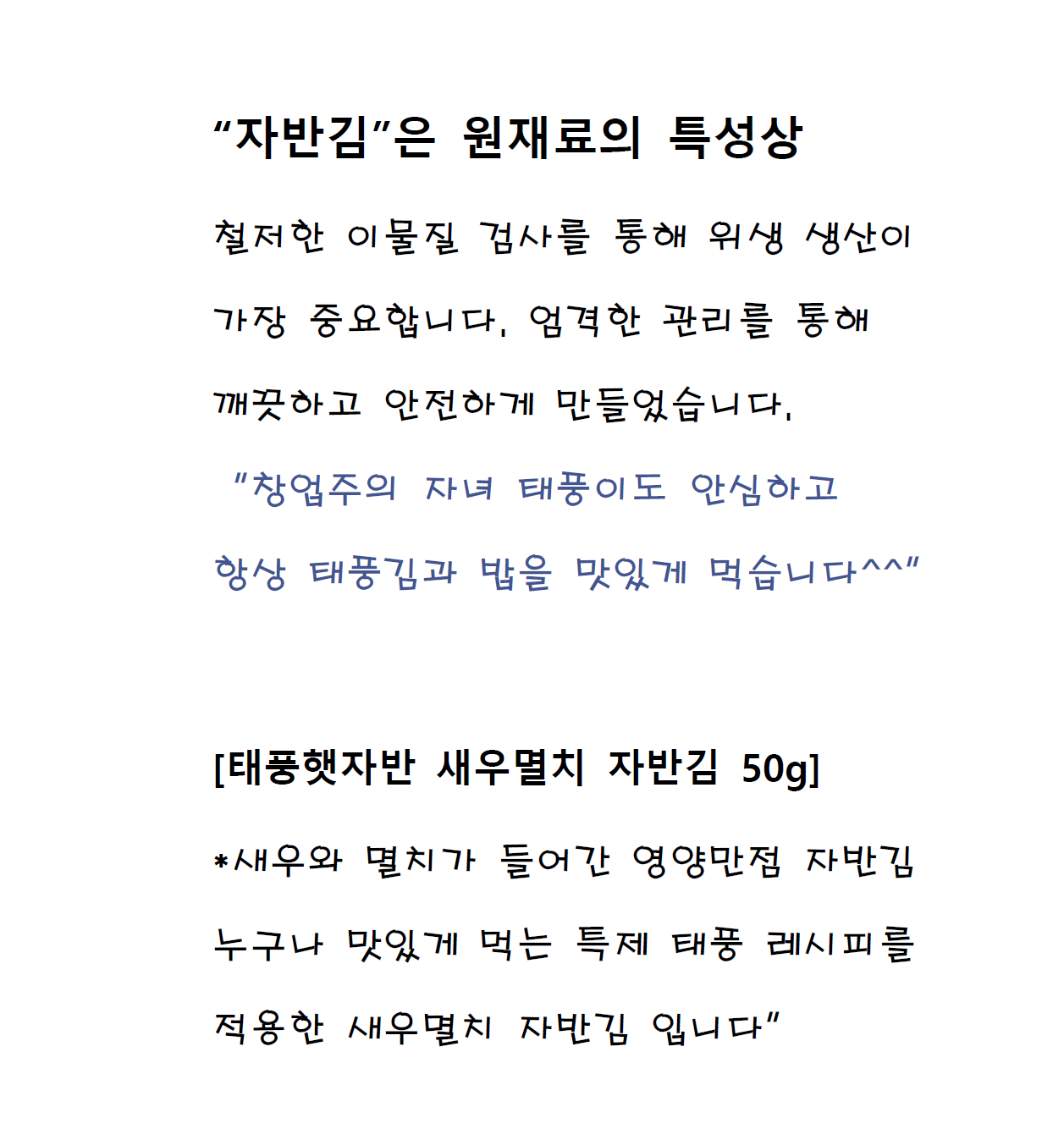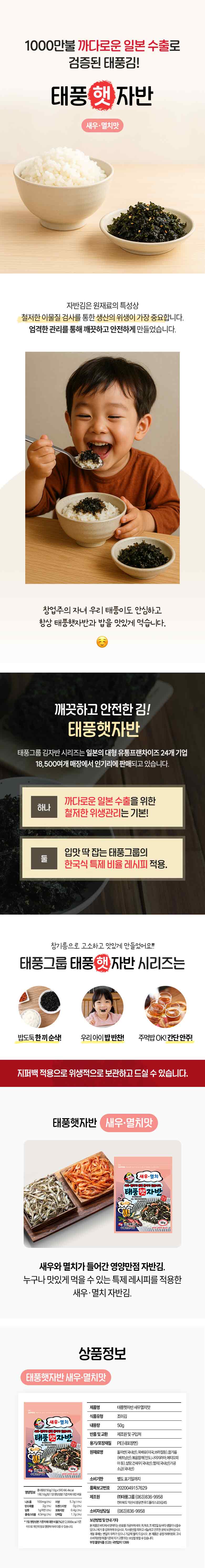 새우 멸치 자반 김 50g (30봉), 1000만불 일본 수출 밥도둑 태풍김